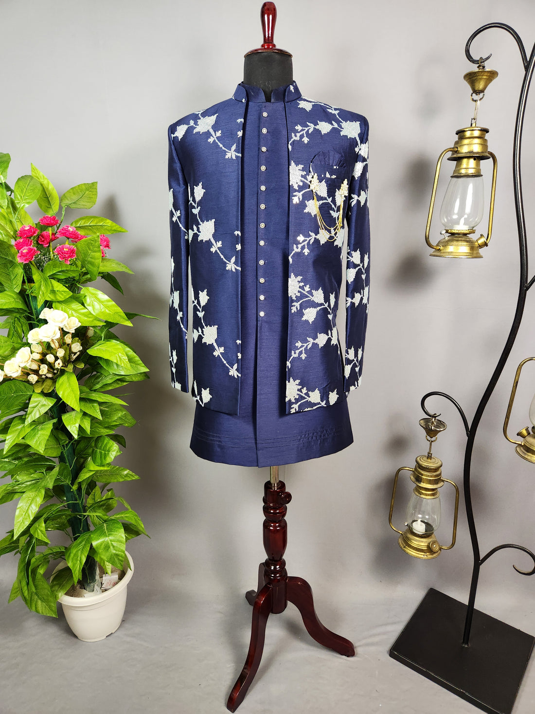 Blue Indo-Western Sherwani for Men | Indian Groom Wedding Outfit