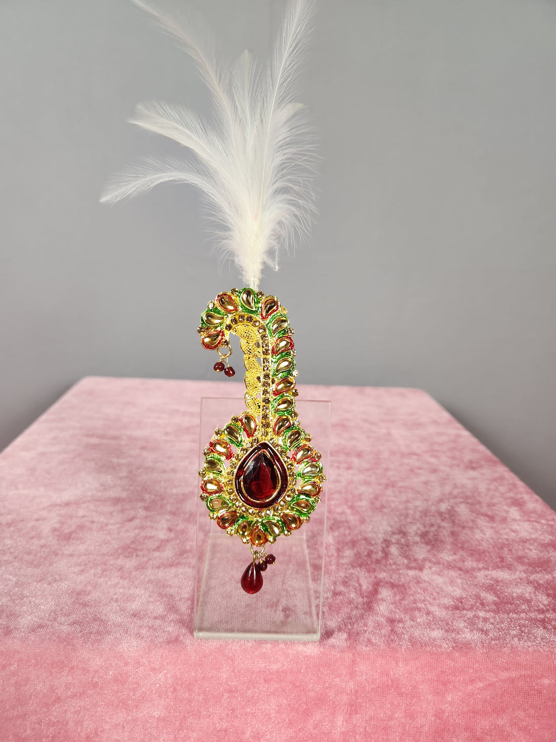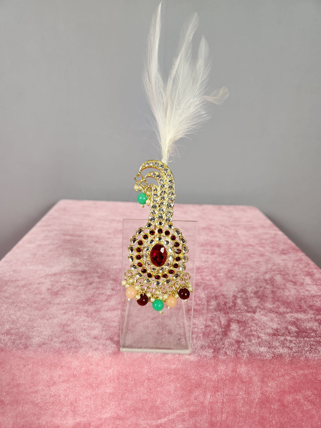 GROOM TURBAN BROOCH WITH RED & GREEN MINA