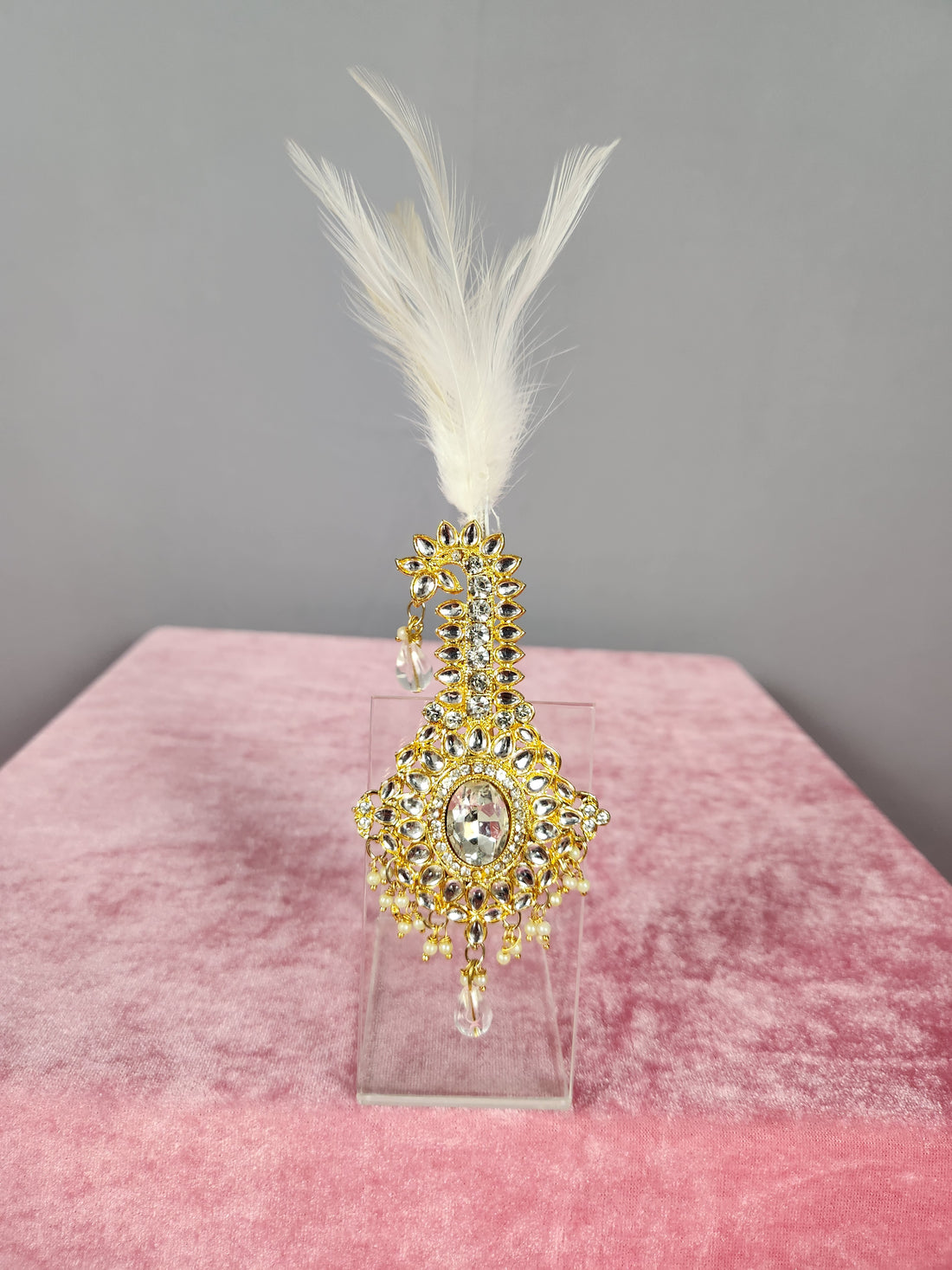 GROOM TURBAN BROOCH WITH WHITE KUNDAN STONES