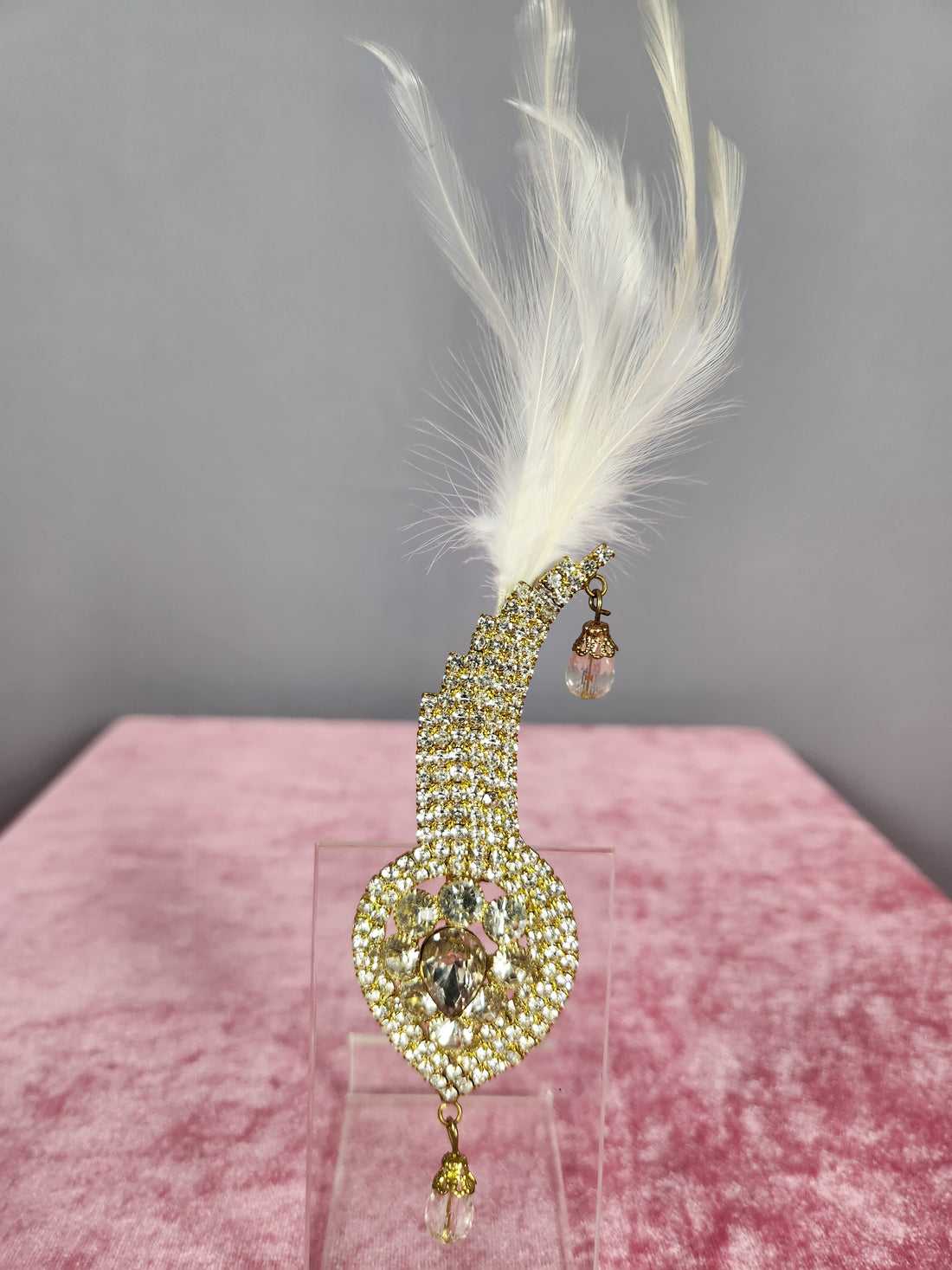 GROOM TURBAN BROOCH WITH WHITE KUNDAN STONES PEACOCK SHAPE