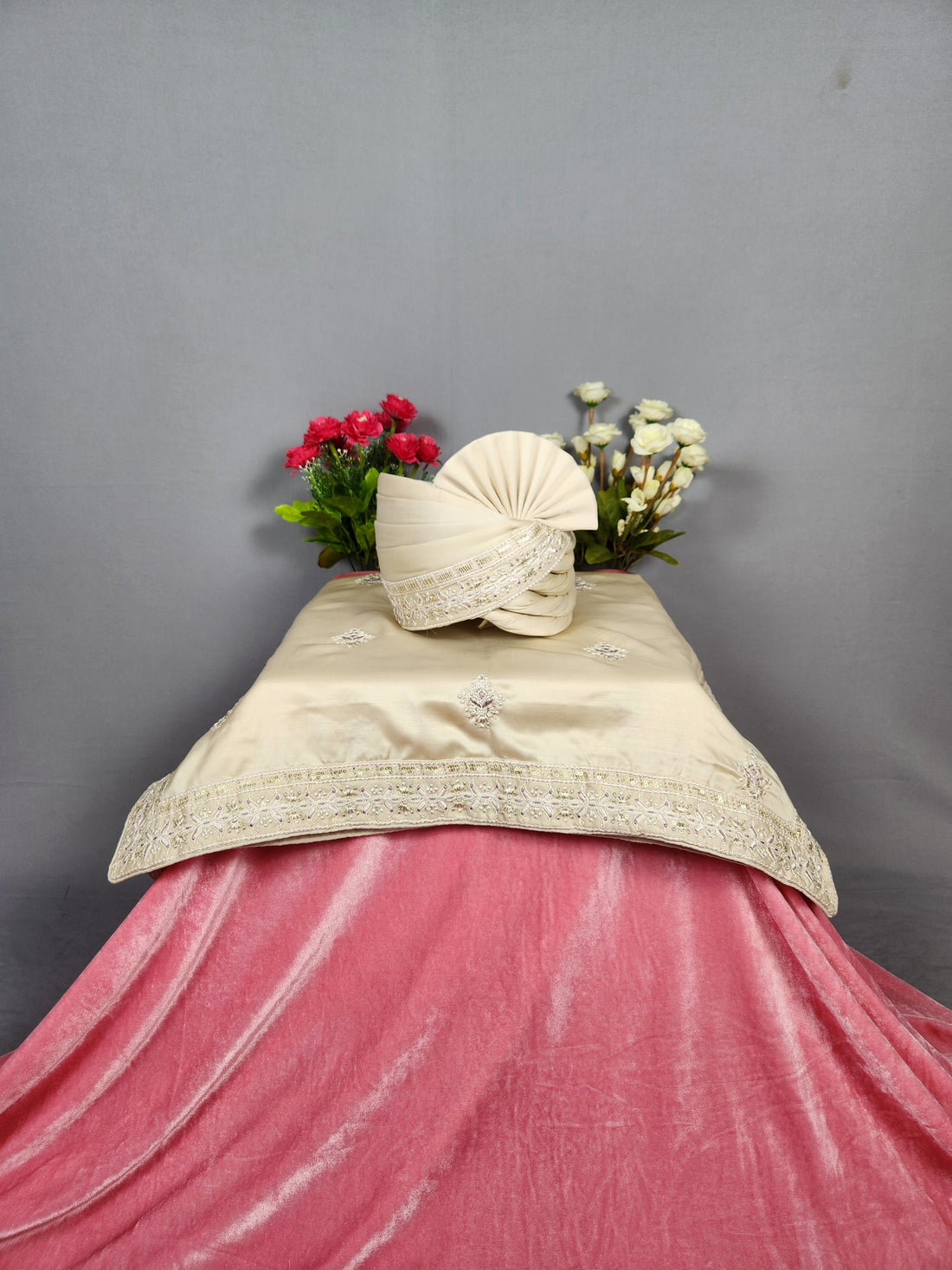 White Groom Turban Shawl With Zirconia Work | Dupatta Safa Set For Men