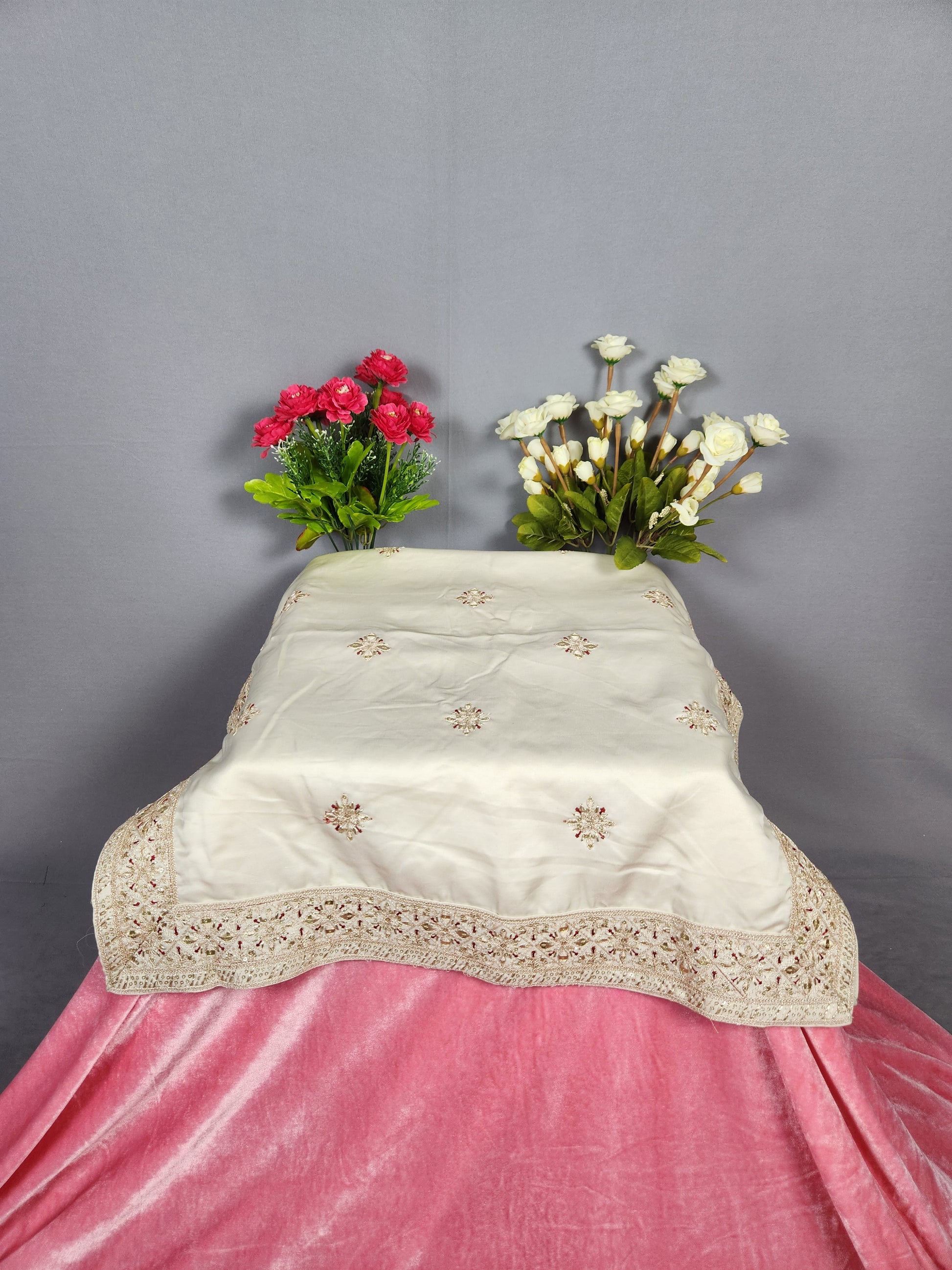 Elevate your wedding look with this elegant Beige Groom Turban and Shawl Set, featuring intricate embroidery on premium fabric. This coordinated set includes an adjustable turban (safa/pagdi) and a matching embroidered shawl (dupatta/stole), designed to pair seamlessly with any Sherwani for a regal, traditional finish.