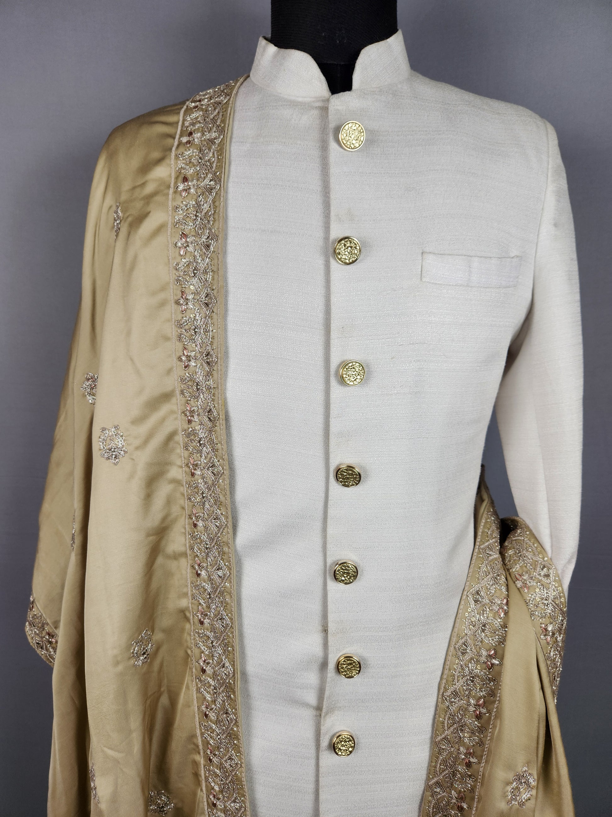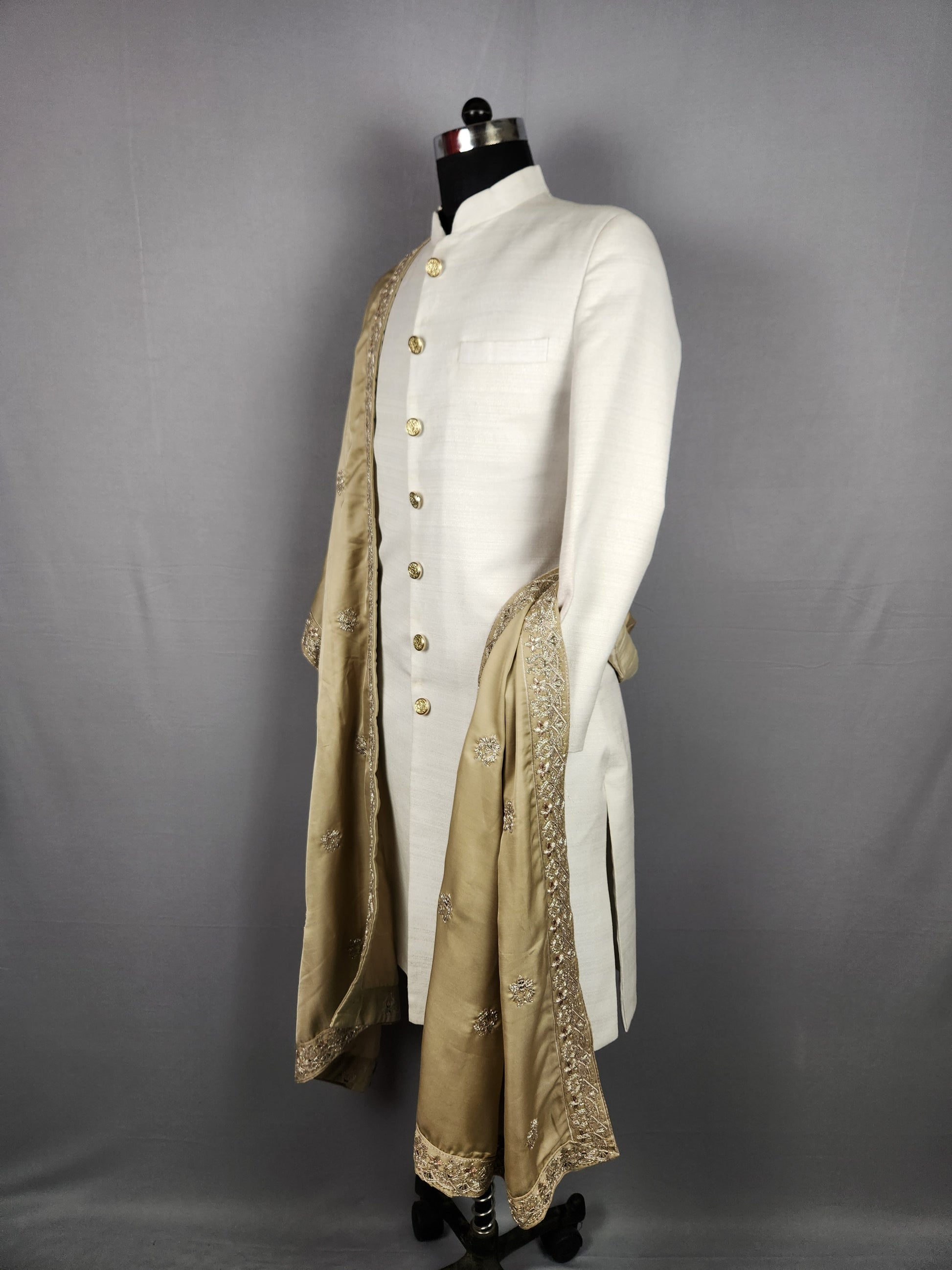 Add timeless elegance to your wedding look with this Copper Gold Wedding Shawl for Groom, crafted from premium fabric and detailed with delicate embroidery. Lightweight and comfortable, it drapes effortlessly over any Sherwani or Indo-Western outfit, adding a regal, traditional touch—perfect for weddings, receptions, and pre-wedding events. This traditional sherwani shawl is an essential groom accessory for any Indian or Indo-Western wedding ensemble.