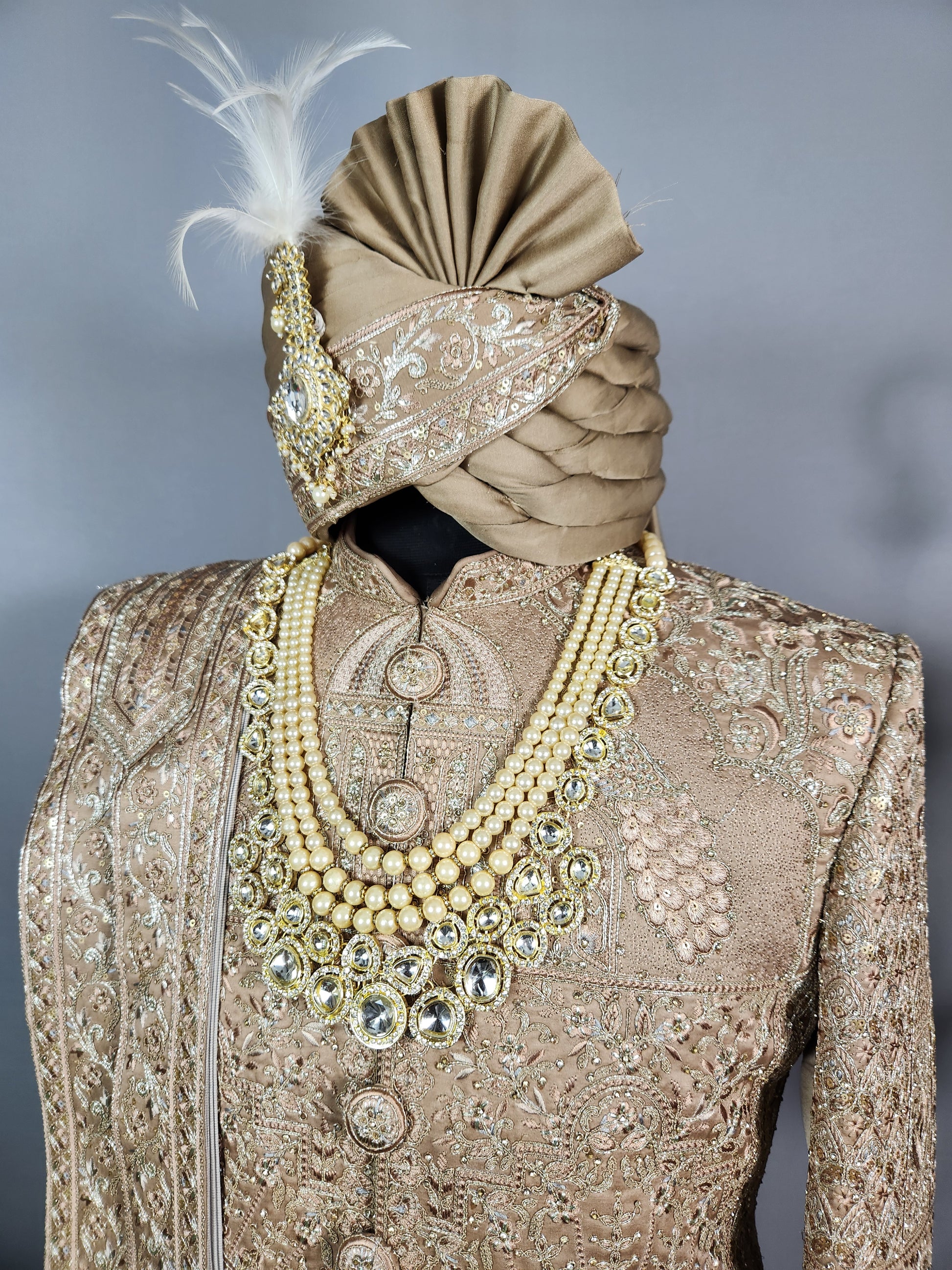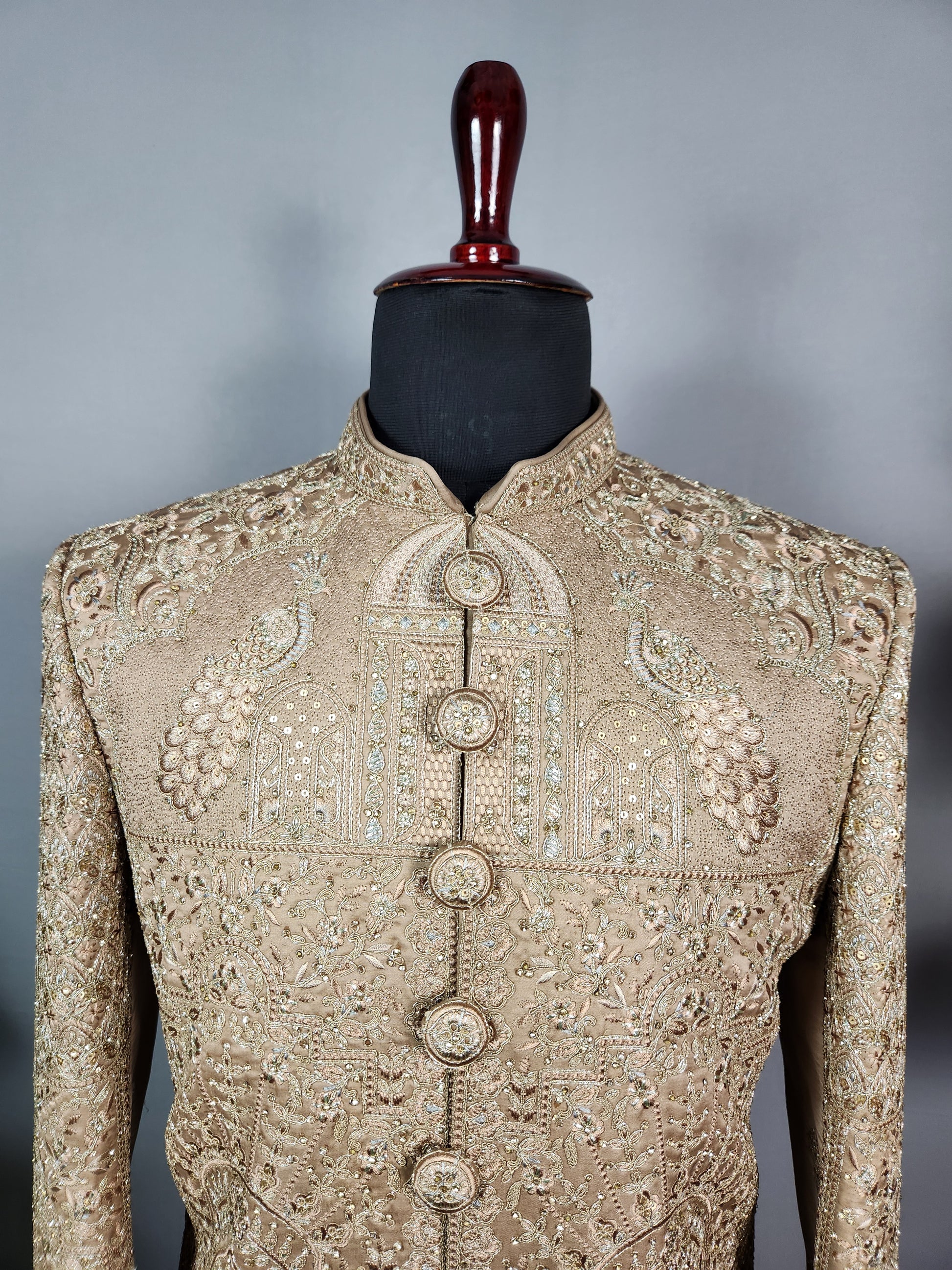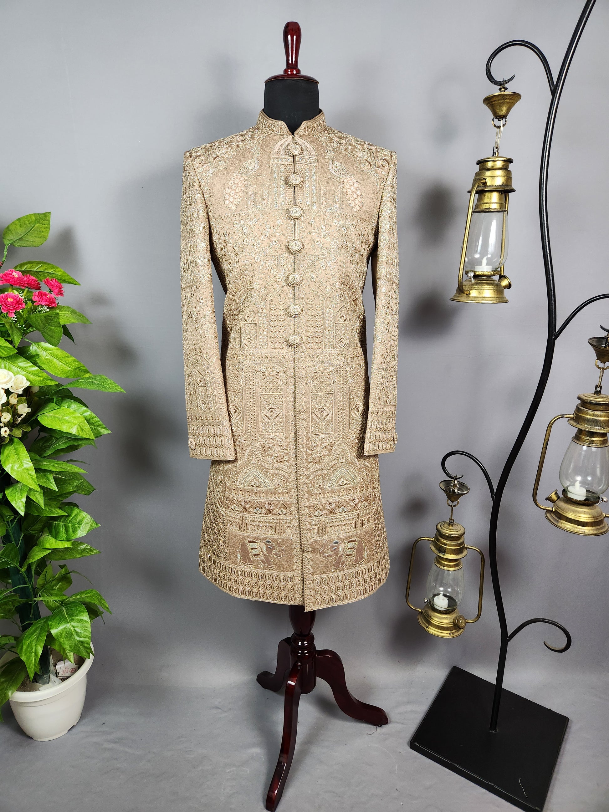 Golden Brown Groom Sherwani - Zari Embroidery | Sherwani For Men