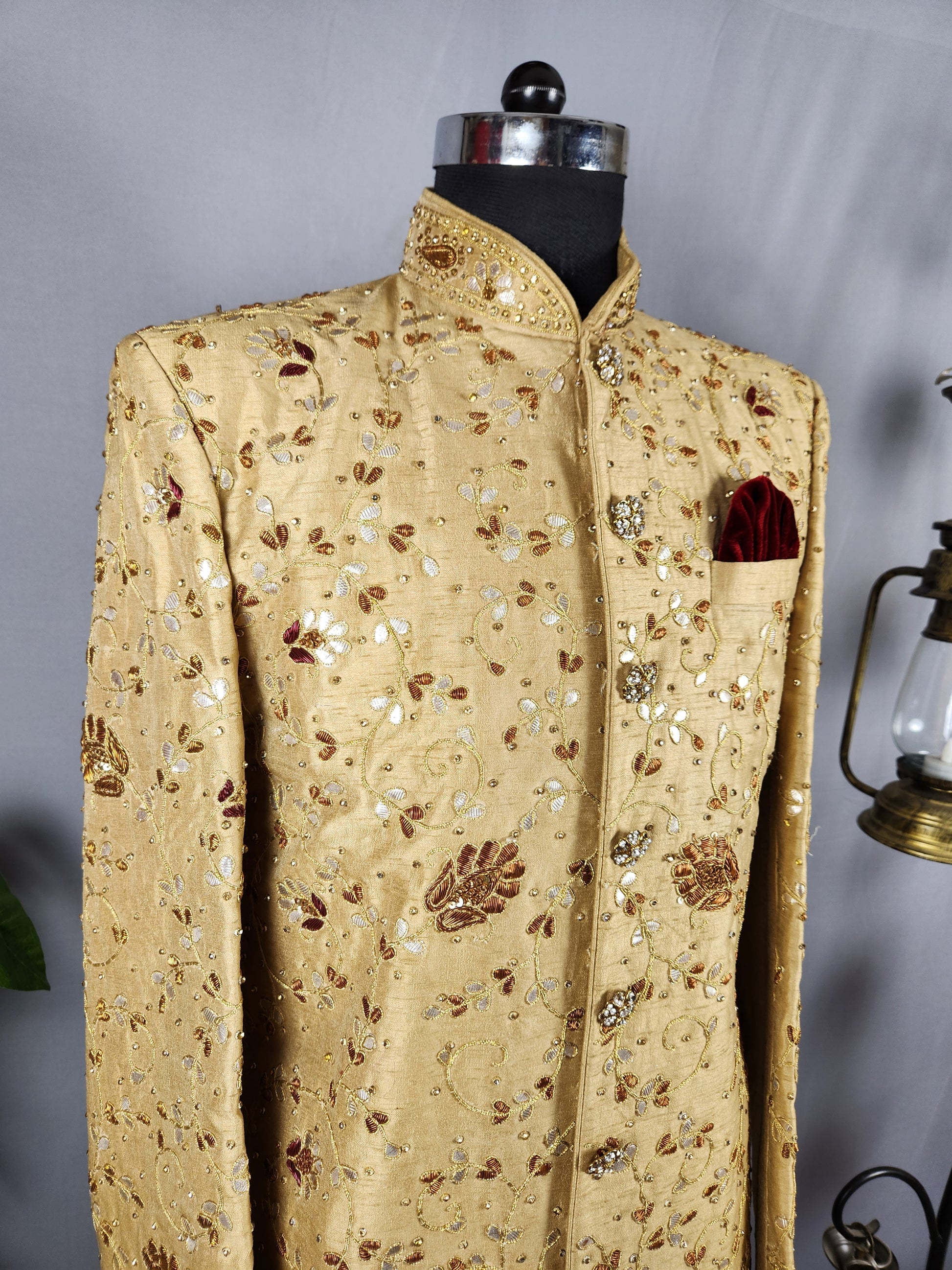 Golden Wedding Groom Sherwani - Traditional Zardozi Work | Sherwani For Men