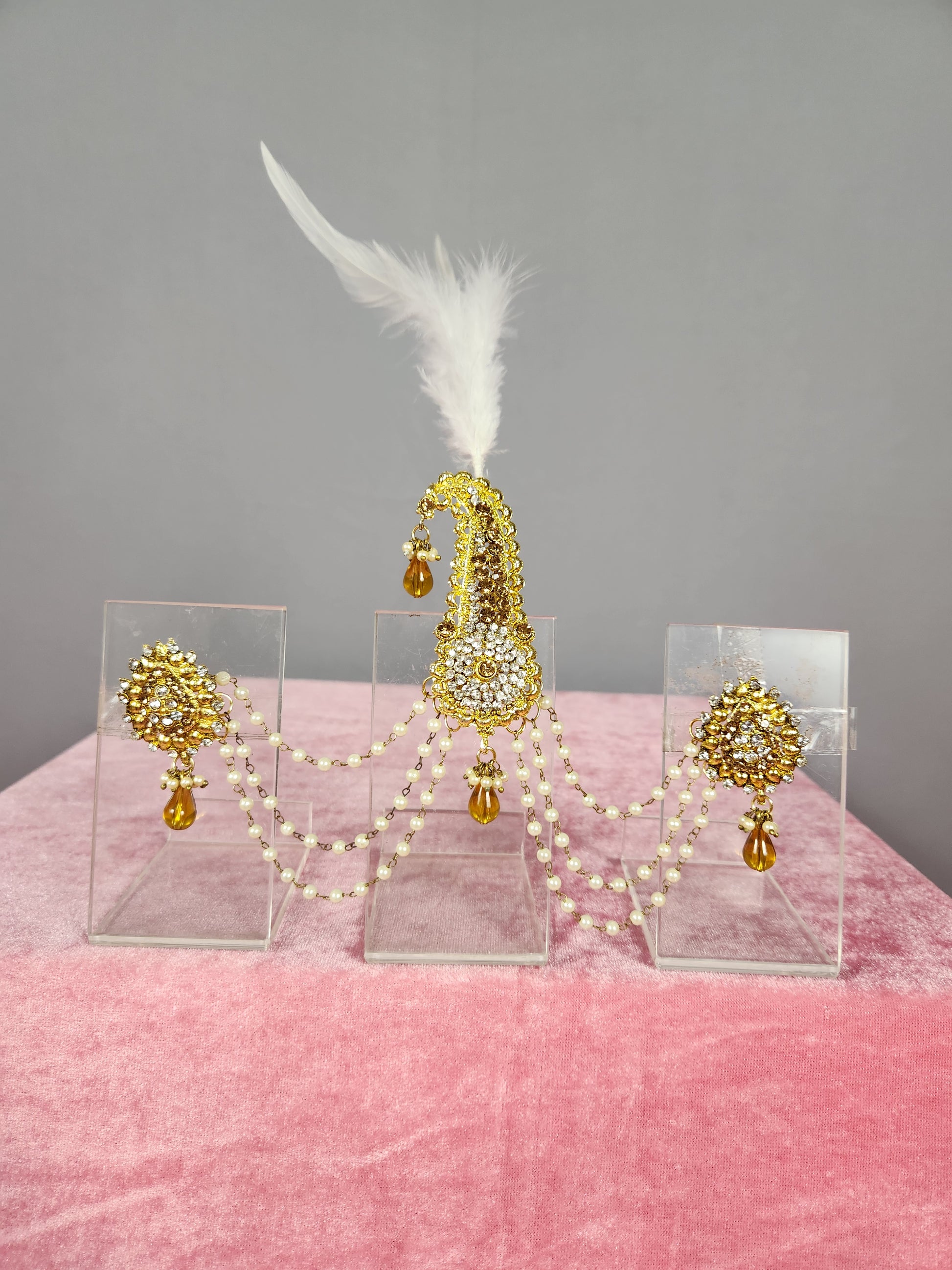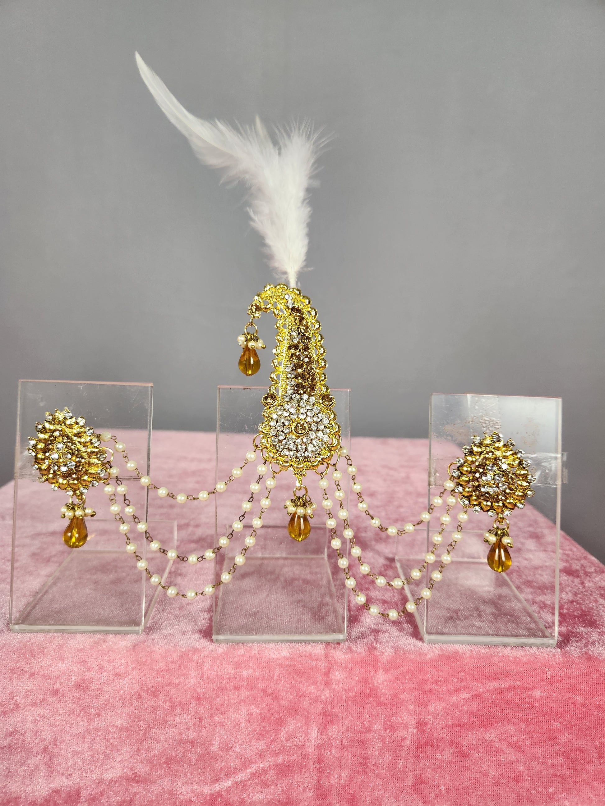 Add a royal finishing touch to your wedding attire with this elegant Turban Brooch for Groom, crafted to elevate any safa, pagdi, or sherwani. Whether you're dressing for a traditional Indian wedding or a cultural celebration, this brooch offers a regal and sophisticated accent to your headwear. Made with intricate detailing and available in gold-tone, pearl, or kundan-style designs, it easily pins to your turban for a secure and stylish fit.