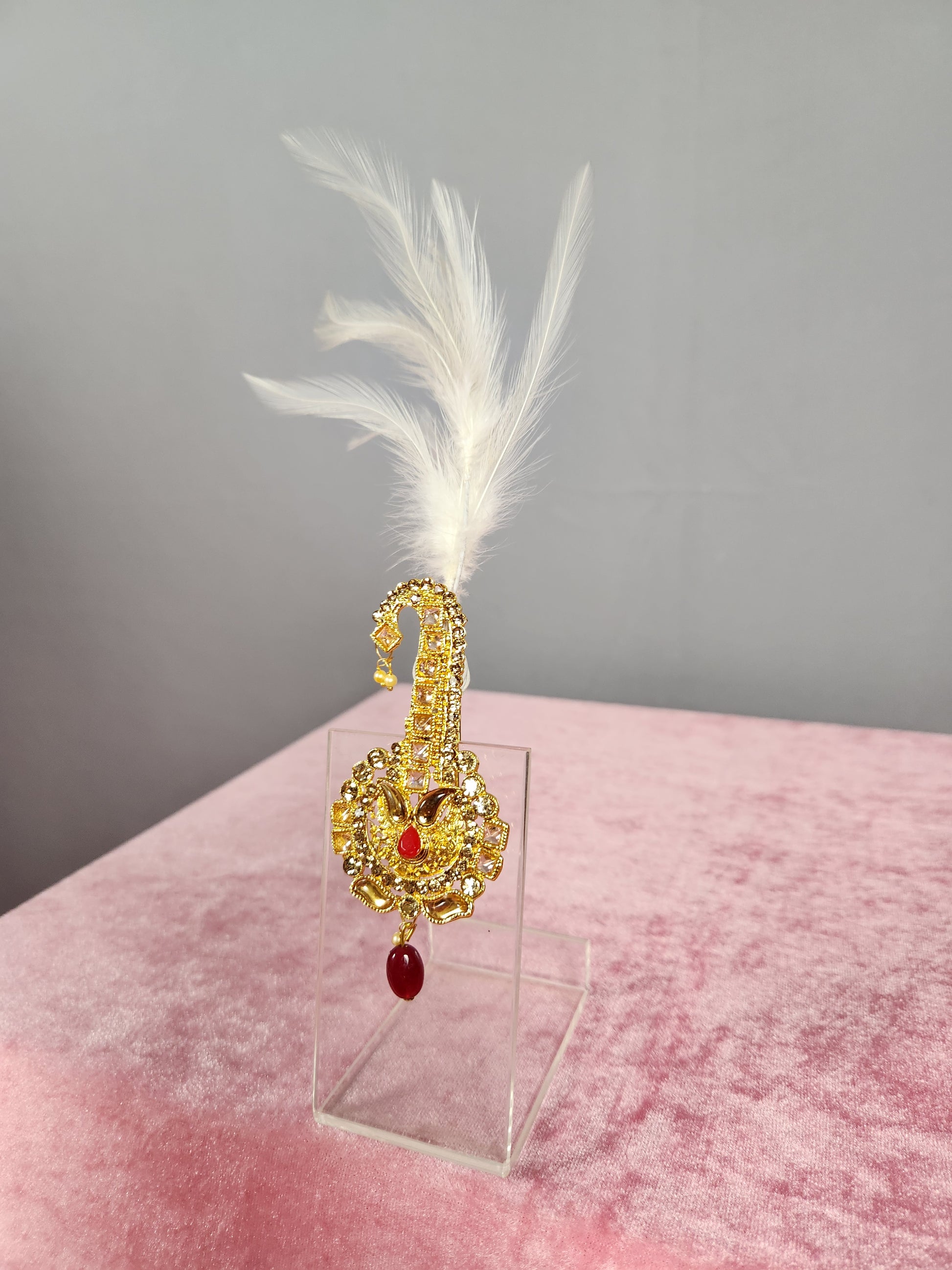 GROOM TURBAN BROOCH WITH SINGLE RED STONE