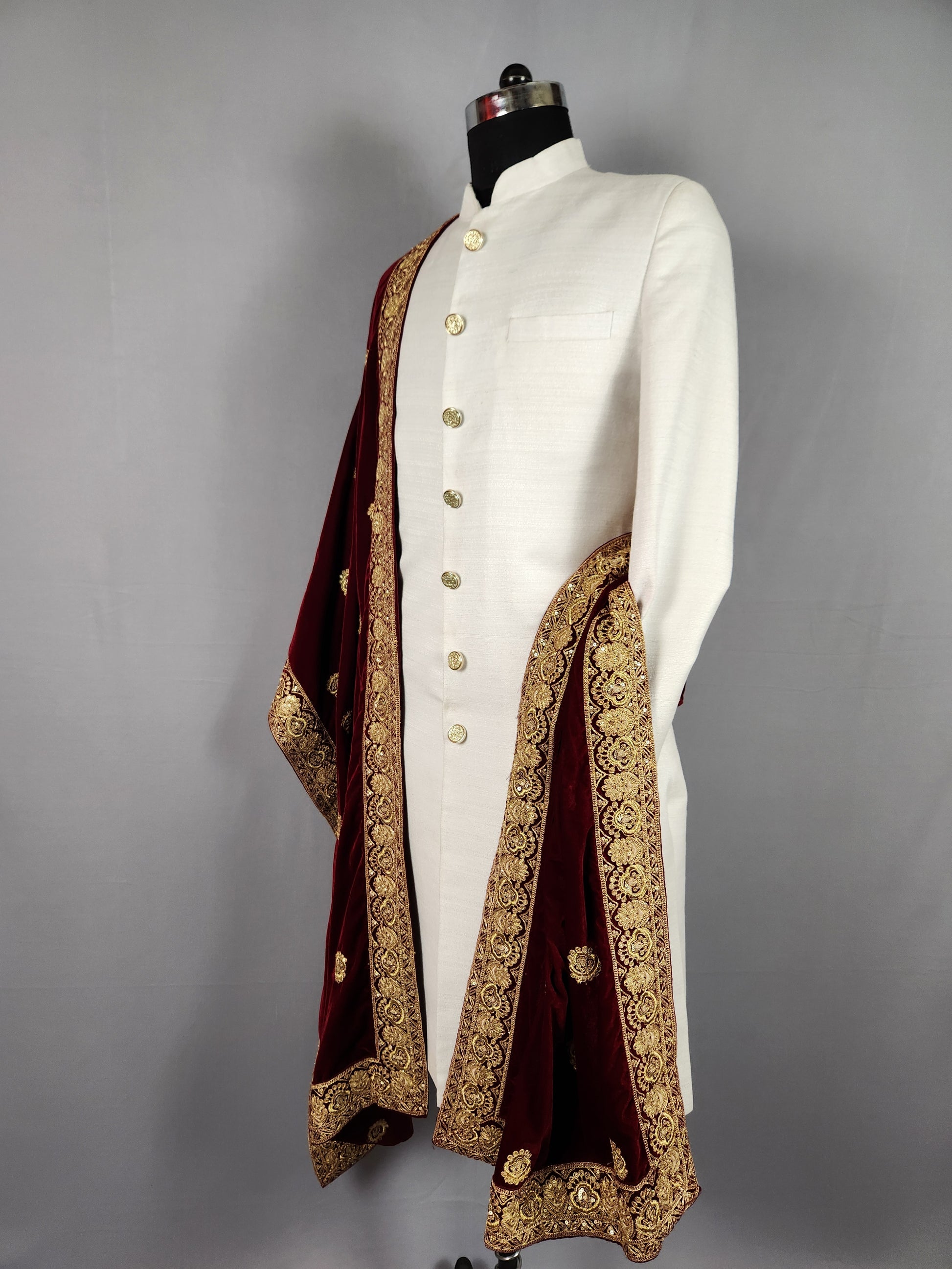 Add timeless elegance to your wedding look with this Red Wedding Shawl for Groom, crafted from premium fabric and detailed with delicate embroidery. Lightweight and comfortable, it drapes effortlessly over any Sherwani or Indo-Western outfit, adding a regal, traditional touch—perfect for weddings, receptions, and pre-wedding events. This traditional sherwani shawl is an essential groom accessory for any Indian or Indo-Western wedding ensemble.