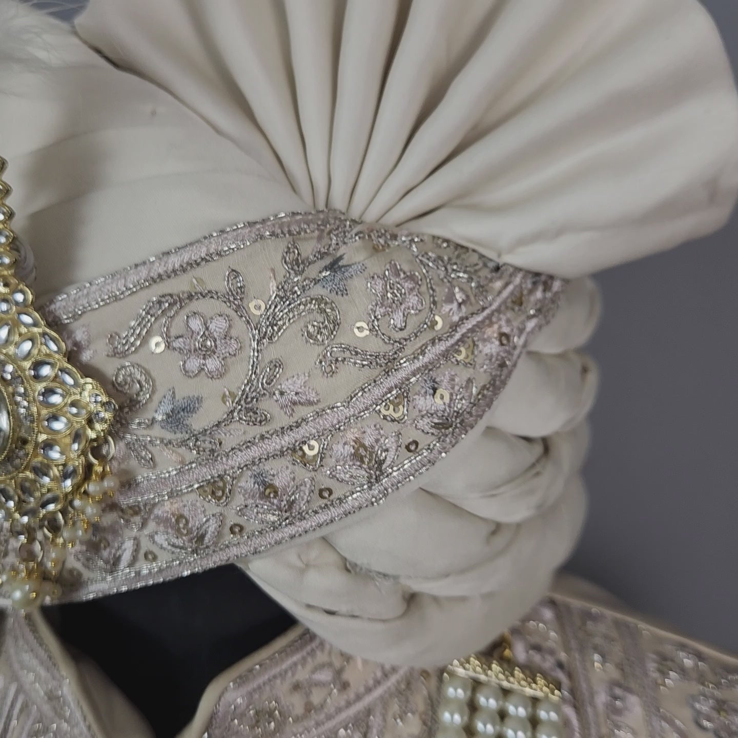Step into your big day with timeless elegance in this Rose Gold Wedding Groom Sherwani, meticulously crafted from a premium silk blend and adorned with intricate hand embroidery. This sherwani showcases traditional charm with refined craftsmanship, making it ideal for weddings, receptions, or grand occasions. Pair it with a matching turban, necklace, and mojari shoes to complete your royal groom look.