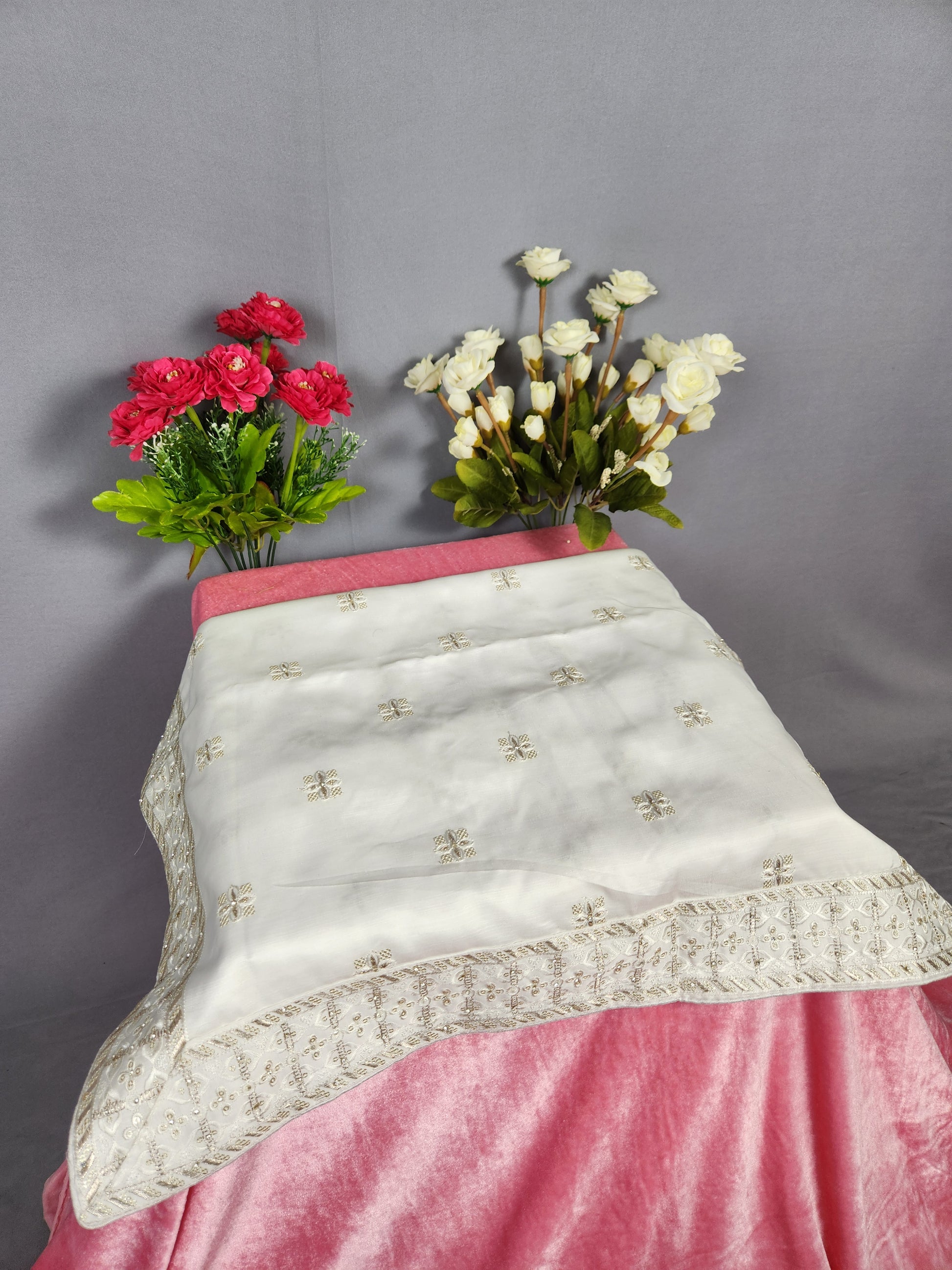 Elevate your wedding look with this elegant White Groom Turban and Shawl Set, featuring intricate embroidery on premium fabric. This coordinated set includes an adjustable turban (safa/pagdi) and a matching embroidered shawl (dupatta/stole), designed to pair seamlessly with any Sherwani for a regal, traditional finish.