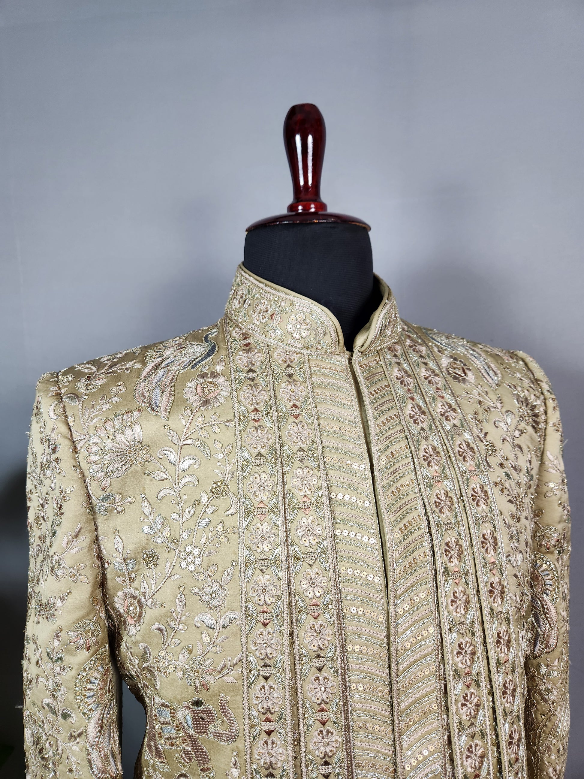Copper Golden Groom Sherwani - Zari Embroidery| Sherwani For Men
